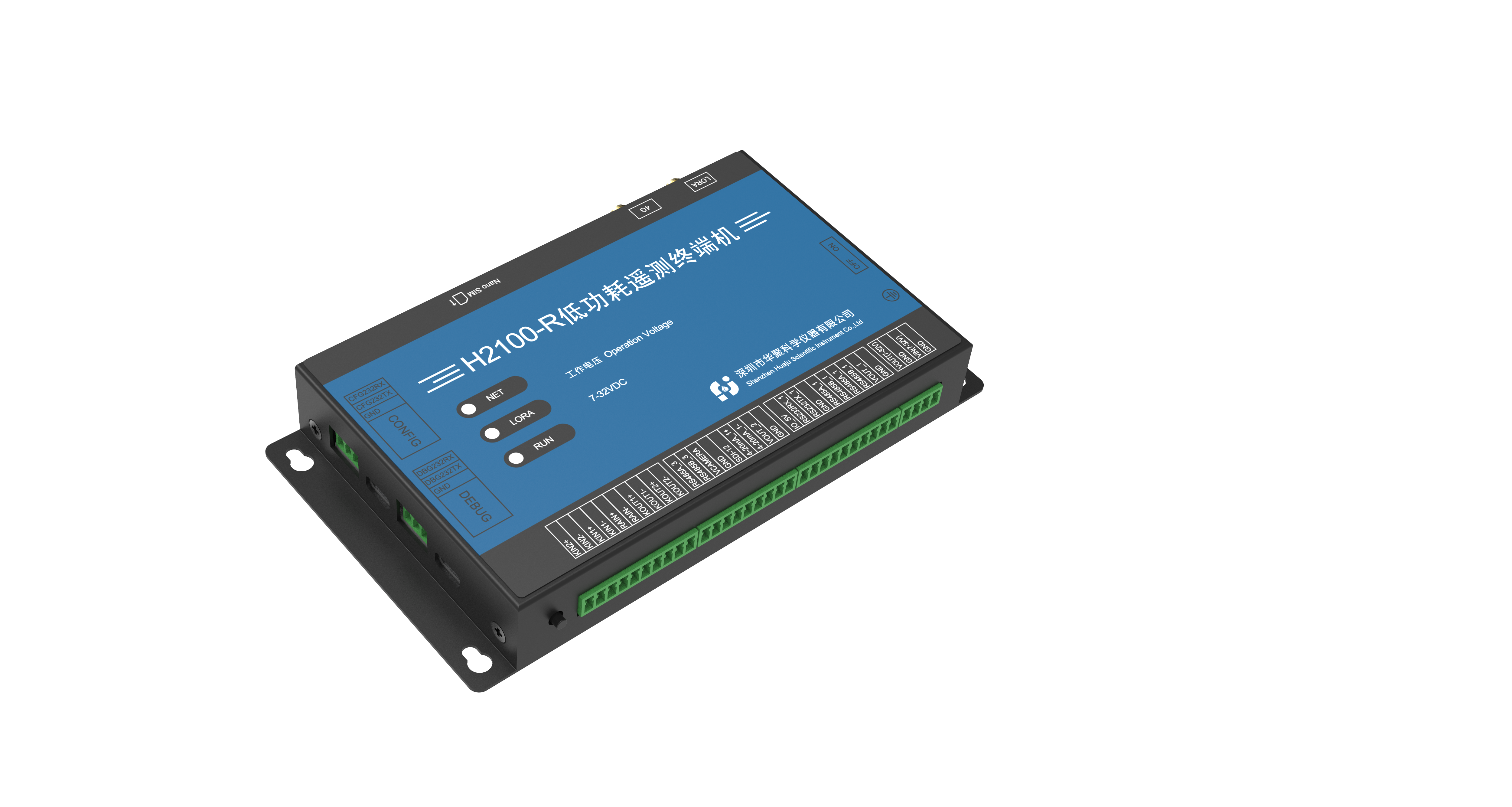 The H-2100 Series product is an ultra-low power, compact, and lightweight intelligent telemetry terminal unit. It can collect data from external sensors via RS485, RS232, 4-20mA, Lora, and digital inputs, and supports connecting multiple Modbus sensors through RS485. The collected data can be uploaded to a network server via 4G, NB-IOT, or Cat-1. Parameters can be configured on-site using a mobile Bluetooth app.